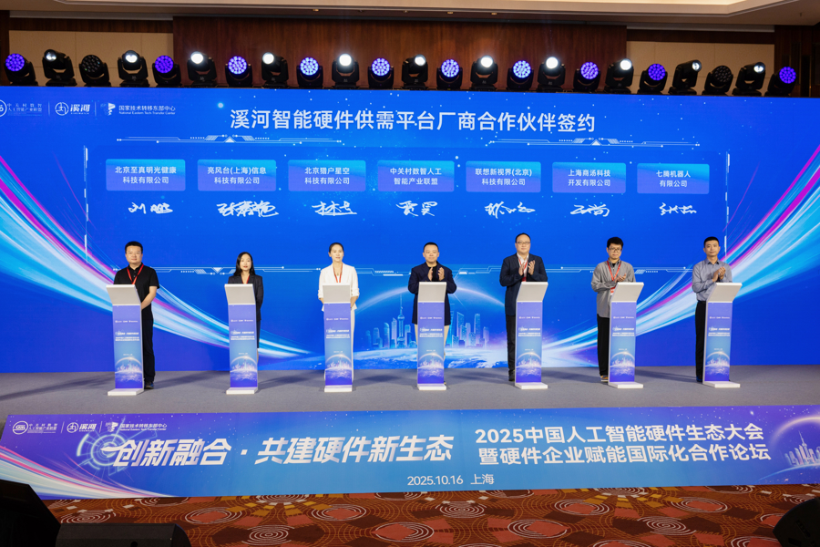 10月16日,以“创新融合·共建硬件新生态”为主题的2025中国人工智能硬件生态大会暨硬件企业赋能国际化合作论坛在上海静安昆仑饭店举行。大会上,溪河智能硬件供需平台正式启动,并开展了多轮签约仪式。首批签约企业包括联想新视界、猎户星空、亮风台等知名科技公司;第二批签约方则有上海商汤科技、西安鲲鹏易飞无人机科技等创新企业。