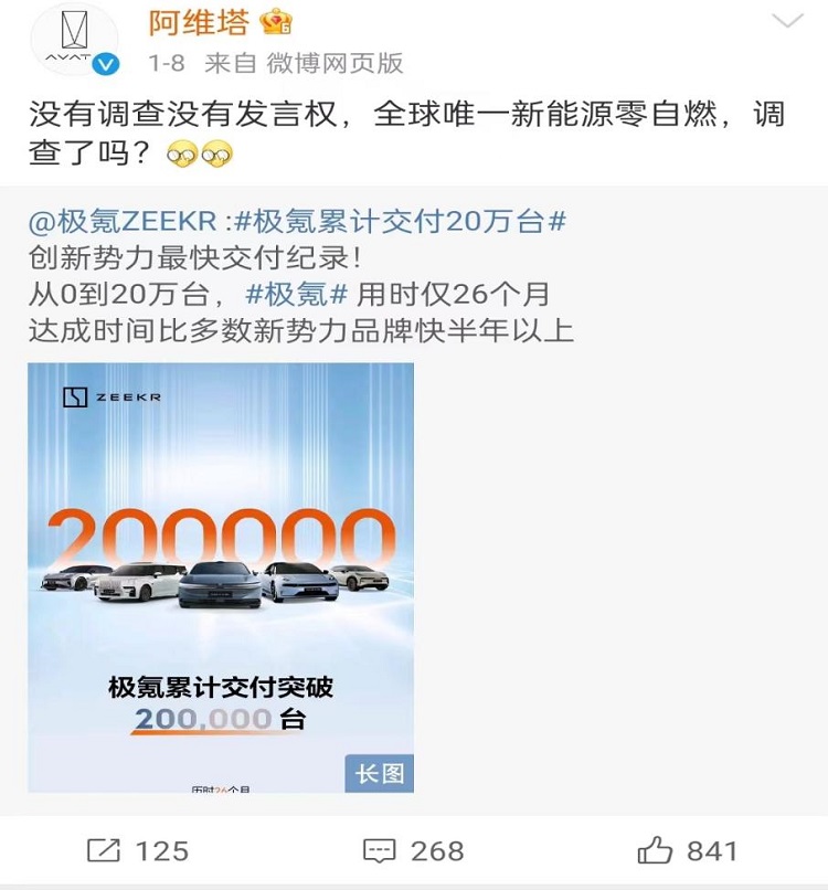 今年1月,阿维塔还和极氪在网上争论,到底谁才是真正的“0自燃”。